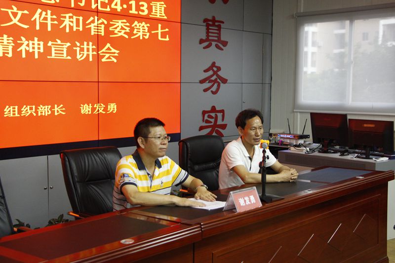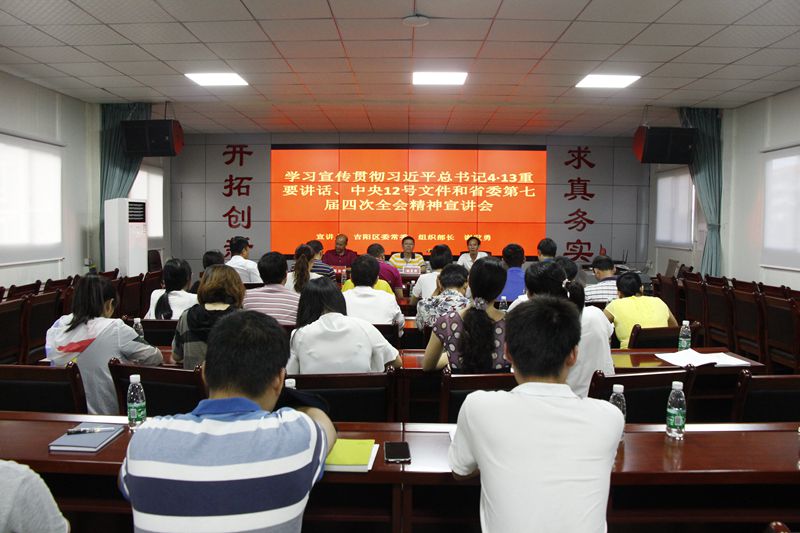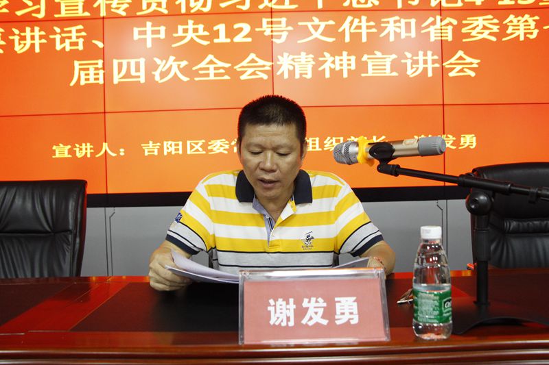 根據(jù)吉陽區(qū)委統(tǒng)一部署,學(xué)習(xí)貫徹習(xí)近平總書記“4·13”重要講話、中央12號文件和省委第七屆四次全會精神宣講會在明佳集團(tuán)三樓會議室舉行。吉陽區(qū)委常委、組織部長謝發(fā)勇作宣講報告。集團(tuán)黨支部書記、董事長陳明主持宣講會。