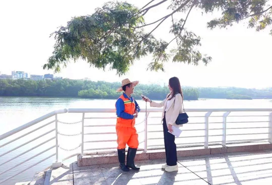 每天工作都是從早上7點(diǎn)鐘到下午的6點(diǎn)半,我們是分段來(lái)的。主要是坐船去收集河上的一些垃圾,一天巡邏清掃一次,清掃完了回來(lái)再巡邏保潔。水面和紅樹林里的垃圾都要清理。下雨天我們也要出來(lái)(工作),臺(tái)風(fēng)天就要做好防風(fēng)的工作,如果是下雨,我們一樣要出來(lái)打撈垃圾。