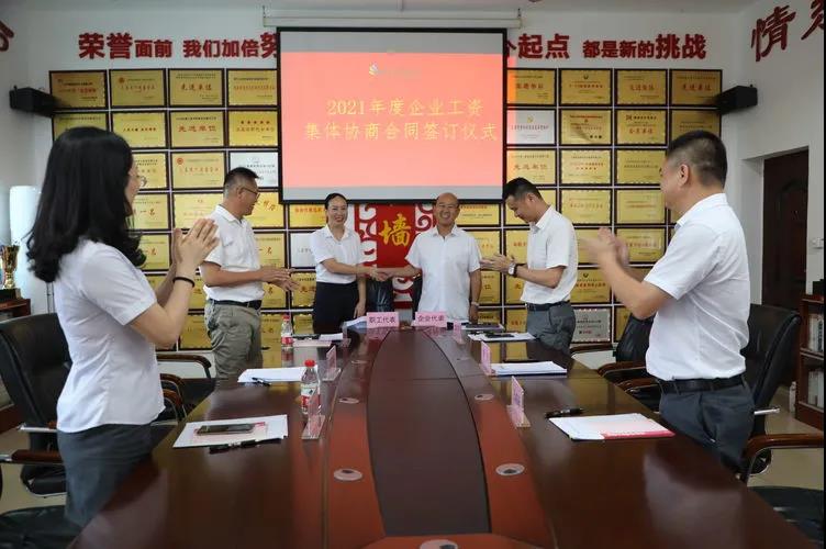 7月15日,《企業(yè)工資專項(xiàng)集體合同》簽訂儀式順利舉行。公司總裁陳云、工會(huì)主席高斐斐等6名協(xié)商代表參加了本次簽訂儀式。陳云表示,公司工會(huì)在開展此次集體協(xié)商過(guò)程中,能夠以企業(yè)職工的意愿和需求為出發(fā)點(diǎn),以切實(shí)維護(hù)職工權(quán)益為目標(biāo),積極引導(dǎo)職工做企業(yè)發(fā)展的主人,不僅為企業(yè)和職工協(xié)商共謀搭建了平臺(tái),還為企業(yè)注入了活力和生機(jī),實(shí)現(xiàn)了企業(yè)和職工雙方的共贏。