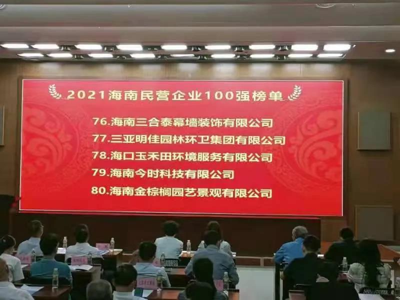 11月4日,海南省工商業(yè)聯(lián)合會(huì)在?诎l(fā)布“2021海南民營(yíng)企業(yè)100強(qiáng)”榜單。三亞明佳園林環(huán)衛(wèi)集團(tuán)有限公司2019至2021年連續(xù)三年入選海南民營(yíng)企業(yè)100強(qiáng)。