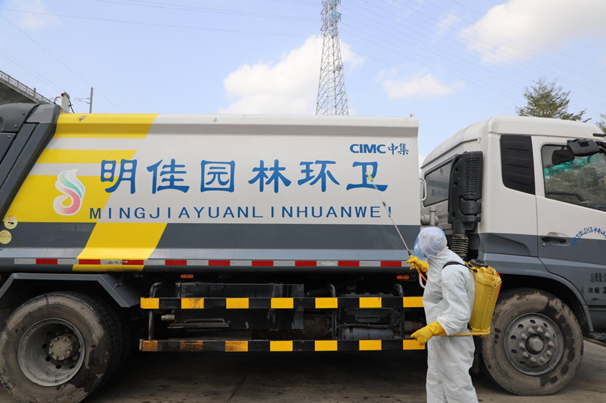 該公司全力做好垃圾清運、處理及垃圾轉(zhuǎn)運站、垃圾收集箱(桶)、垃圾清運車等環(huán)衛(wèi)設施設備的消毒工作。